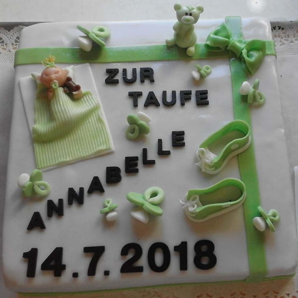 Mit einer individuellen Torte für die Tauffeier heißen wir Ihren Nachwuchs herzlich willkommen. Größe, Geschmack und Form können Sie frei wählen. Dazu besteht die Möglichkeit eine passende Verzierung anbringen zu lassen. Unsere Konditormeister in Saalfelden richten sich ganz nach Ihren Wünschen.